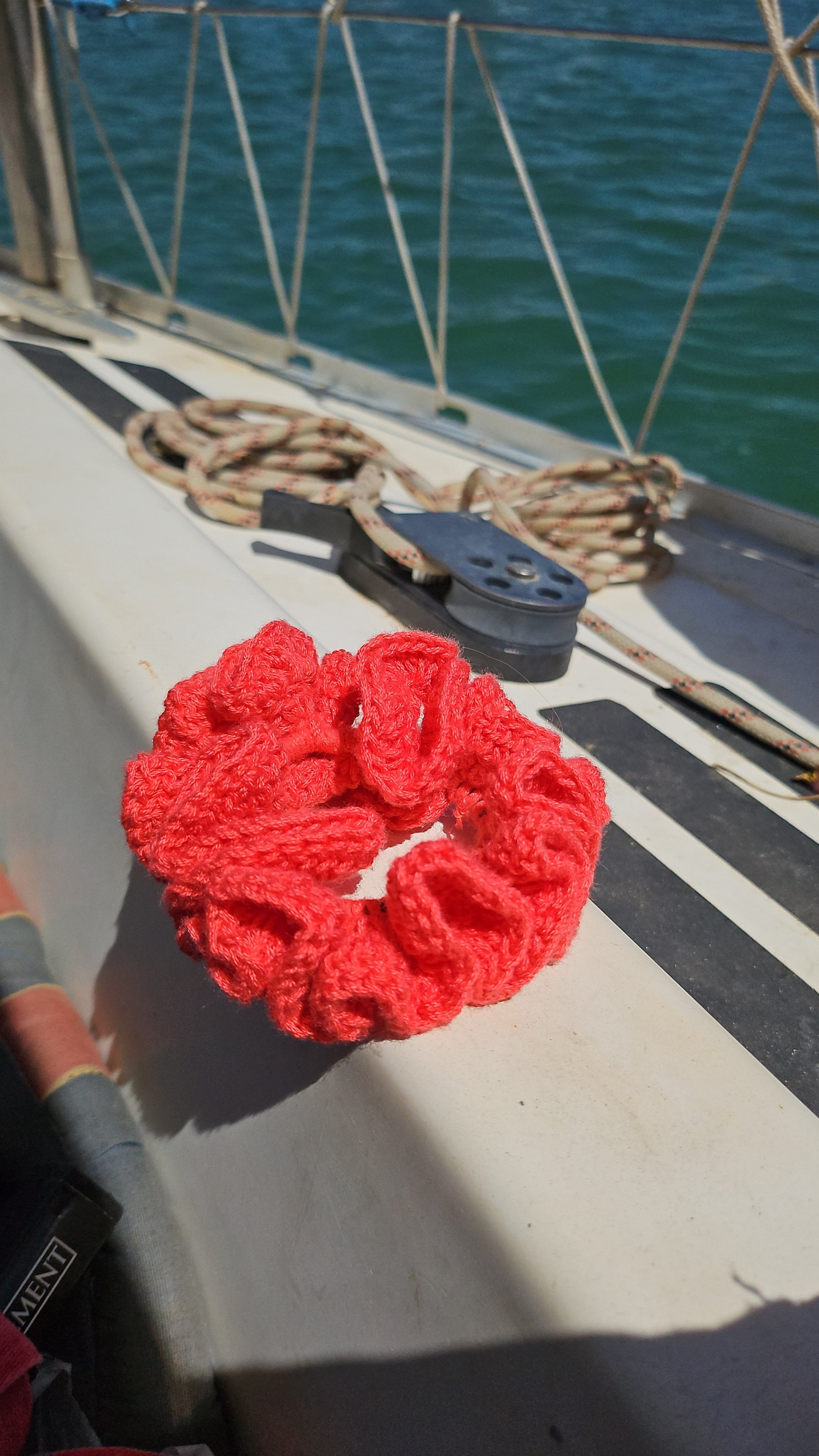 Easy and fast beginner friendly crochet pattern with photo tutorial on this beautiful crocheted scrunchie /sazzle / hairtie. Match your crocheted outfit with a hairtie! It gives a summer feeling and is a perfect accessory to use in your hair or as a summery bracelet around your wrist!