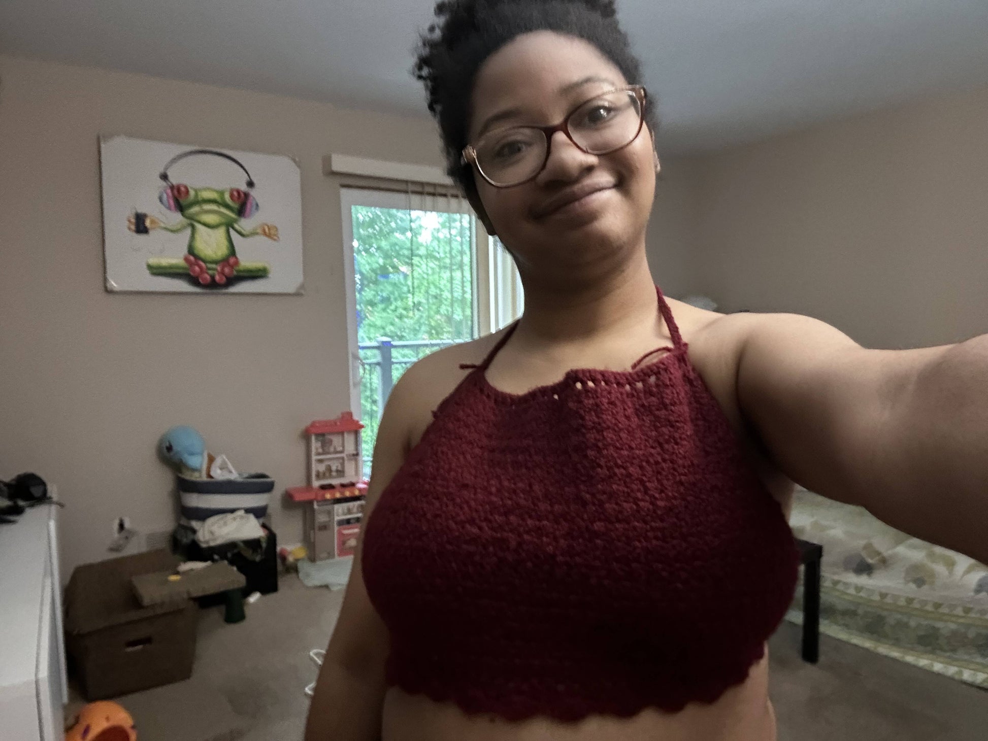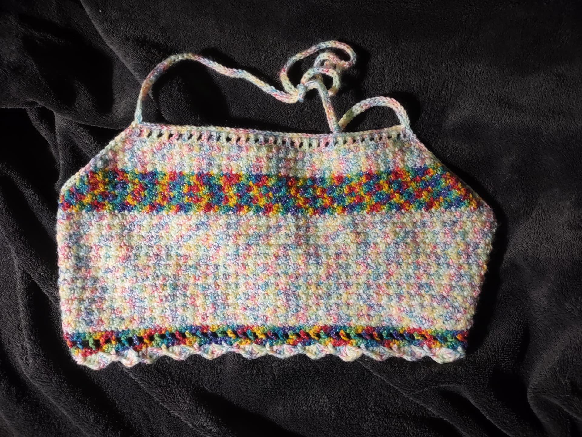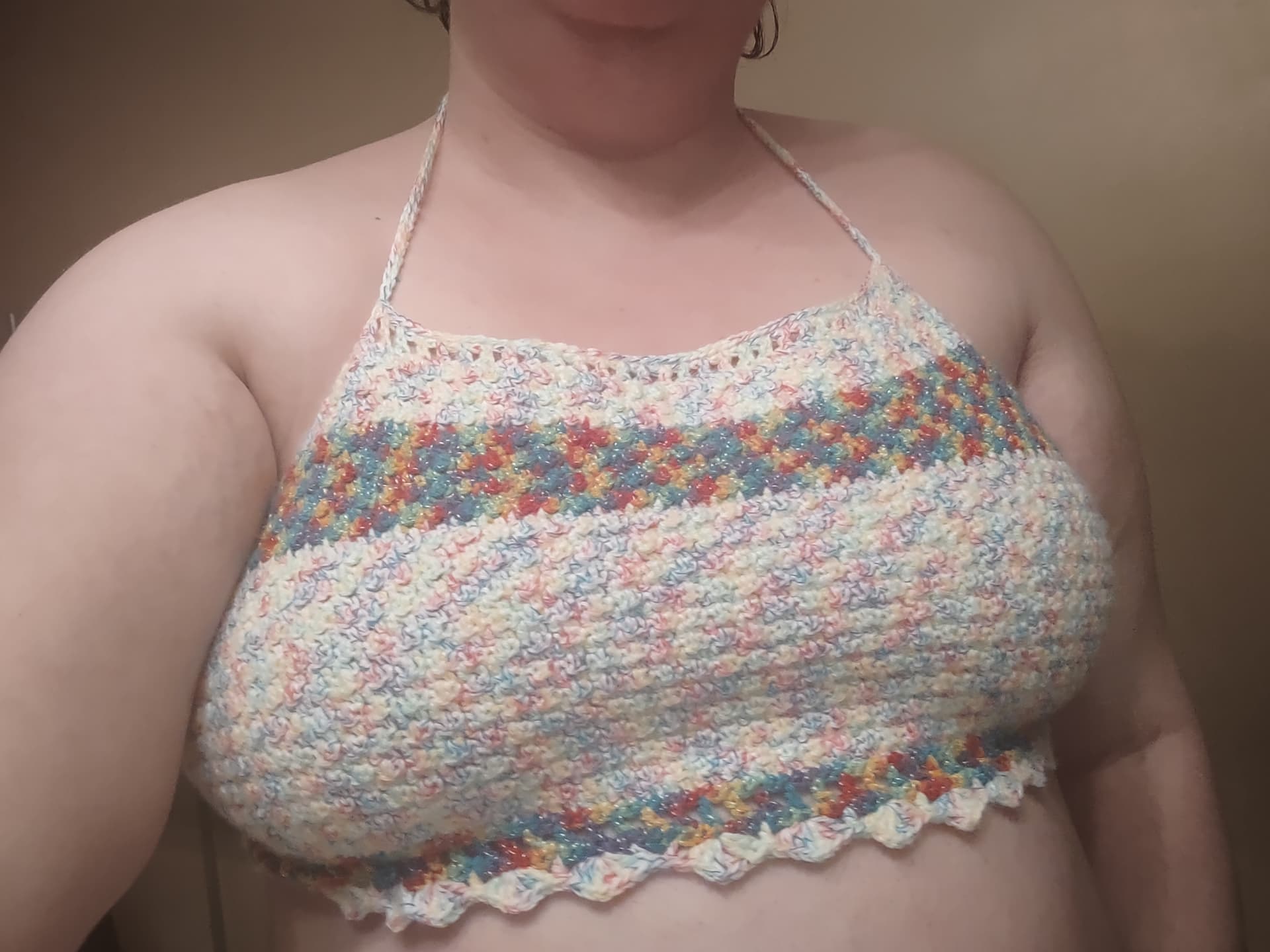 This is the perfect to go top, easy to just grab and get on fast and it just goes with everything. The crochet texture gives summer feeling and this halterneck top is so nice to wear during those very hot sunny days. It was designed during a 5 week long vacation in August on a 35 feet sailing boat in Algarve in Portugal. The top has been used by me and my sister alot, our favorite color of it is the red one, but it is also made in white, off-white, black and blue. And when i want to try a new yarn or color, i can just make this fast top that doesn't require so much yarn to both try the new yarn and to get a new top in that color/yarn to see how the color fits me. This crop top will only require one ball of yarn for the smallest sizes. But if you want to be sure and want to make the stripes a bit longer or thicker or the top longer you need an extra ball of yarn to be sure.