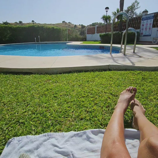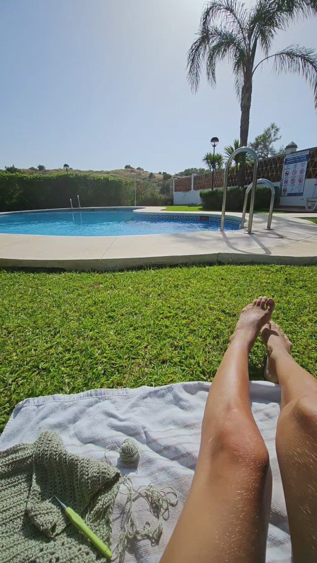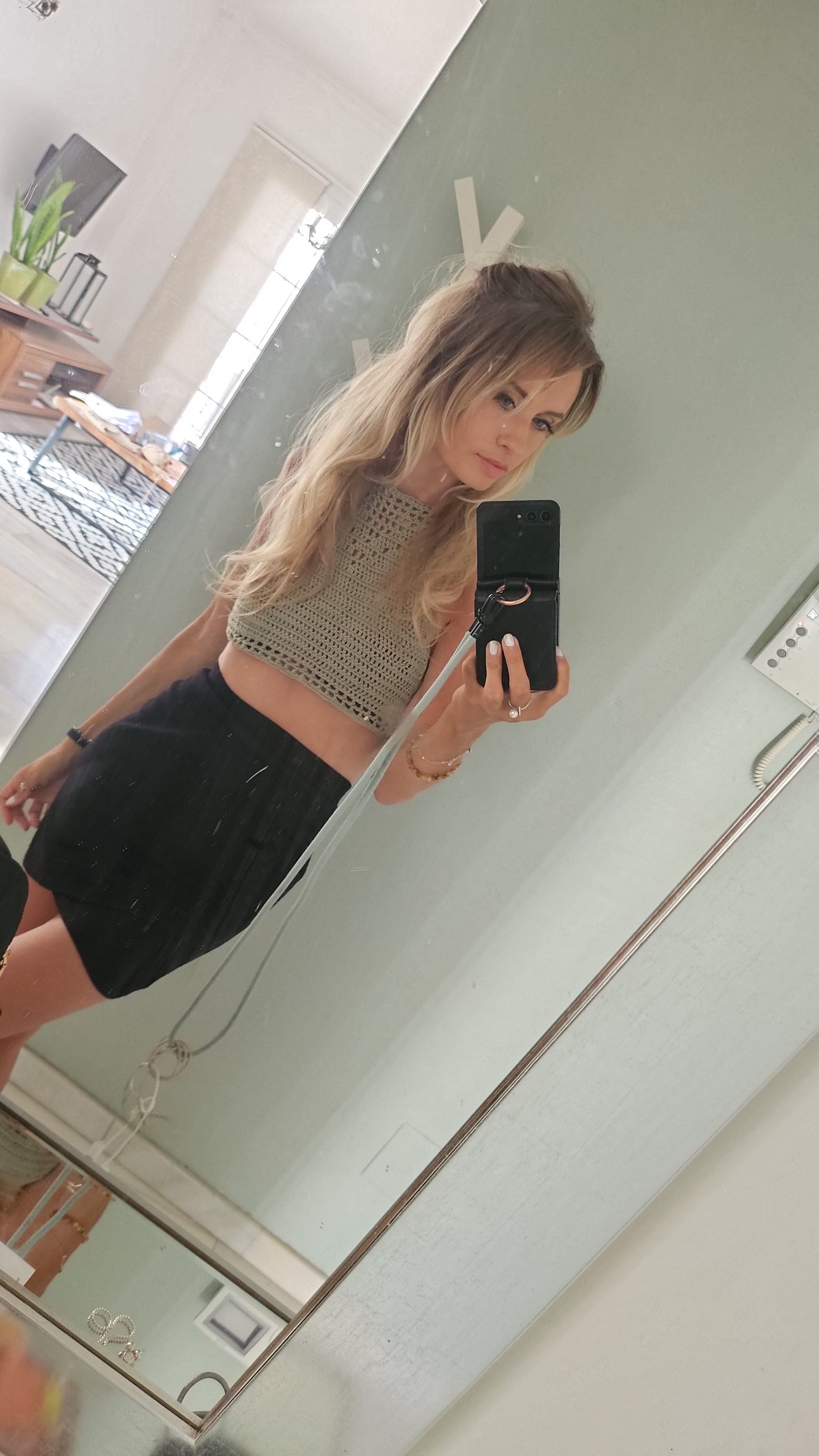 This crochet summer top is made and designed in Costa del Sol in Spain with inspiration from the andalucian climate and the yarn itself first, the olive green color. It turned out to be a halterneck top with a texture looking a bit like a necklace in the top front. Army green feeling and summer! Im looking forward to see this top in other colors too and to use it this coming summer on holiday trips, eating out and of course on the beach the whole vacation!